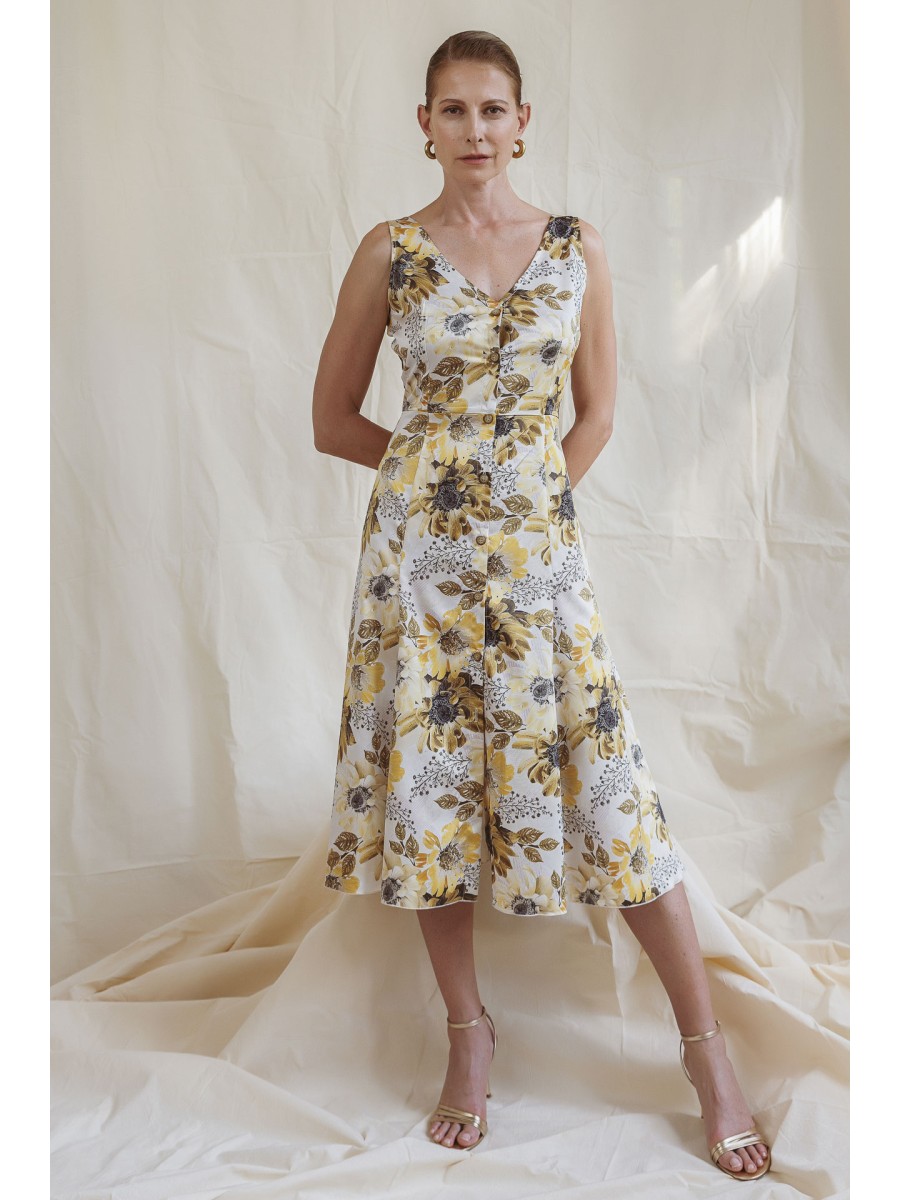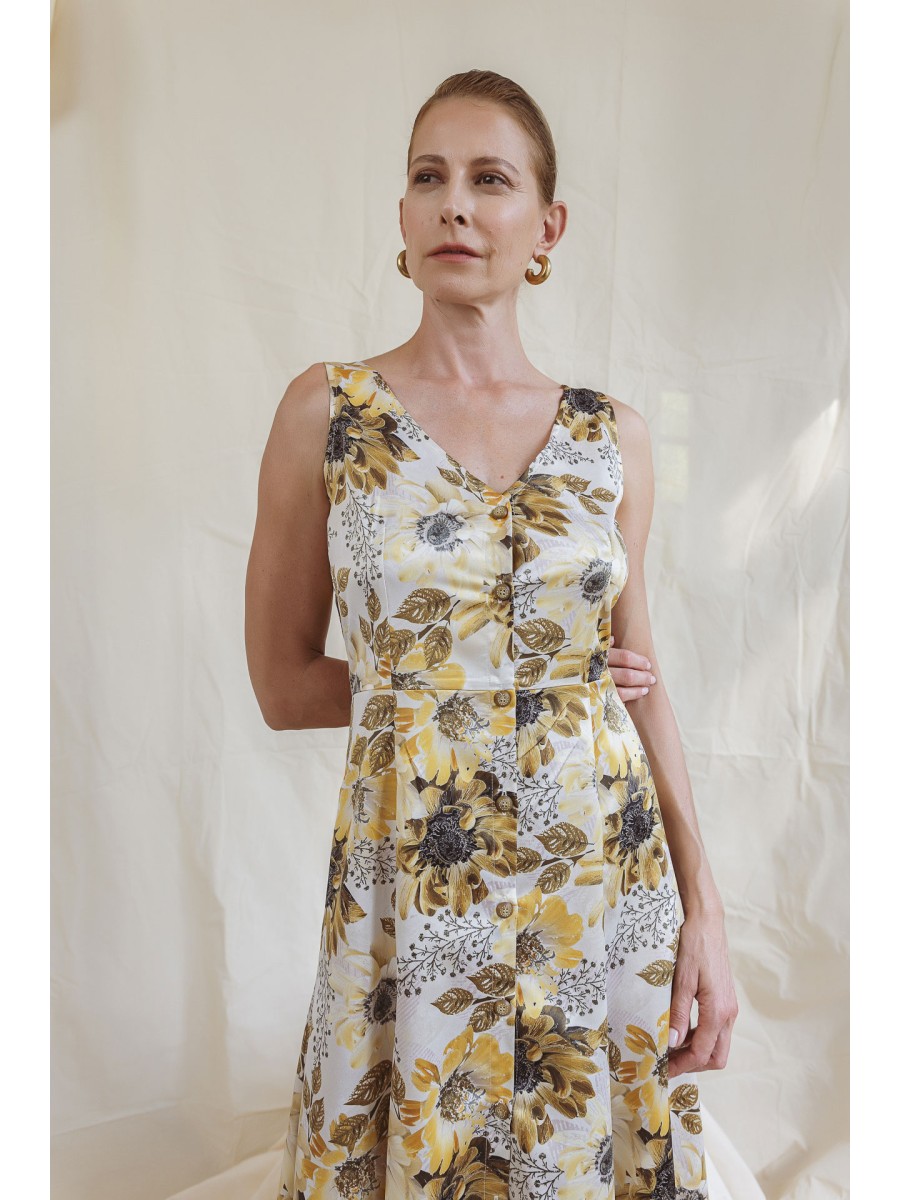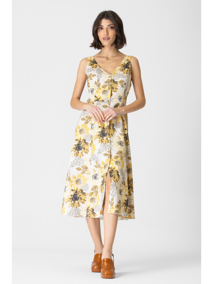 Αμάνικο φόρεμα σατέν εμπριμέ Magic