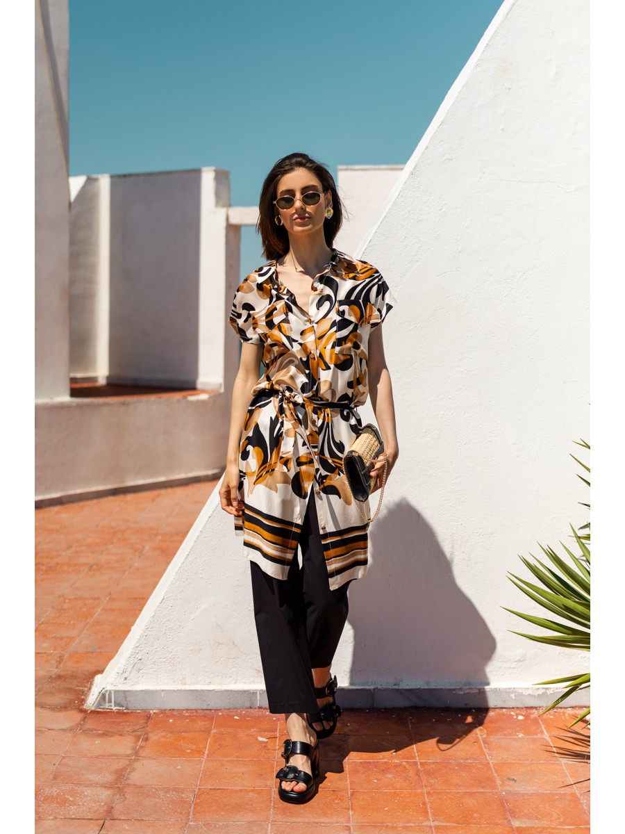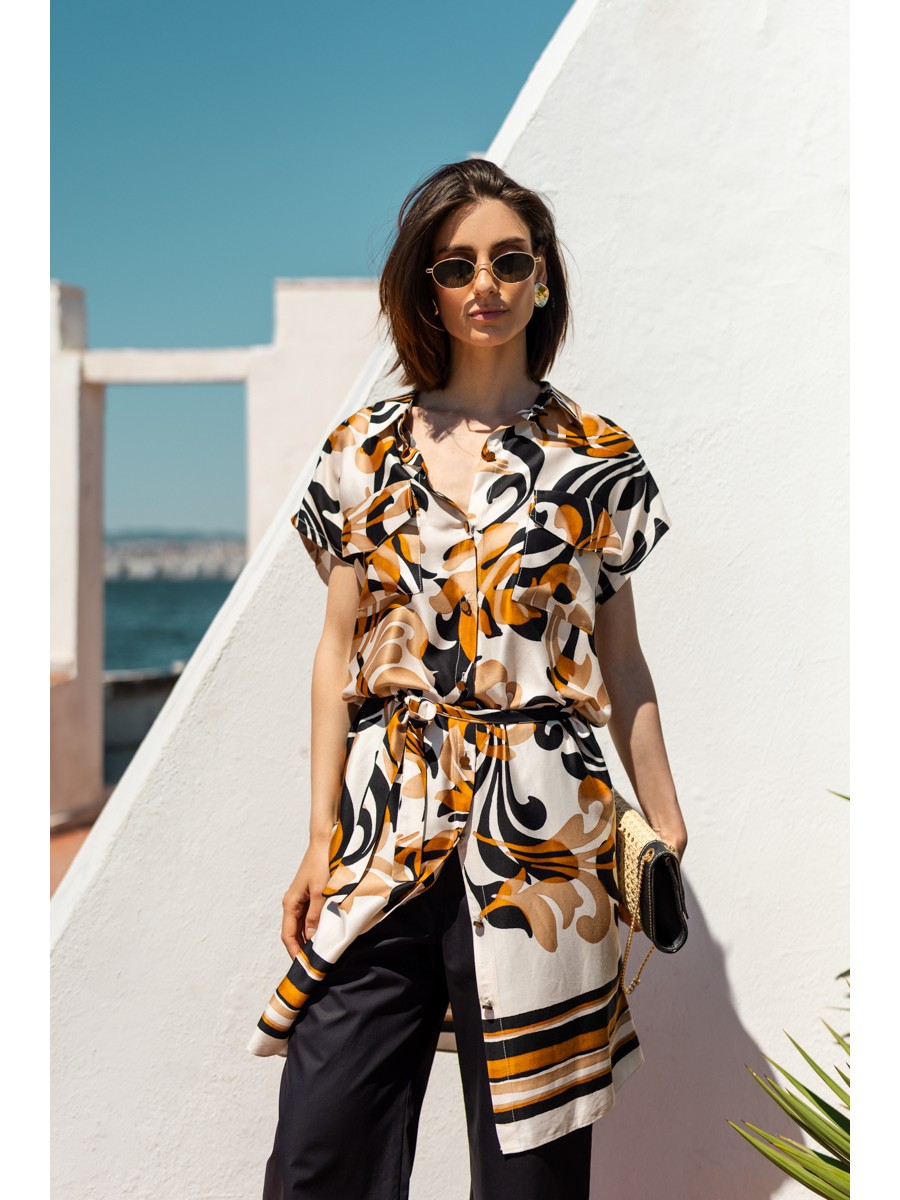 Long shirt printed viscose Foxy with pockets