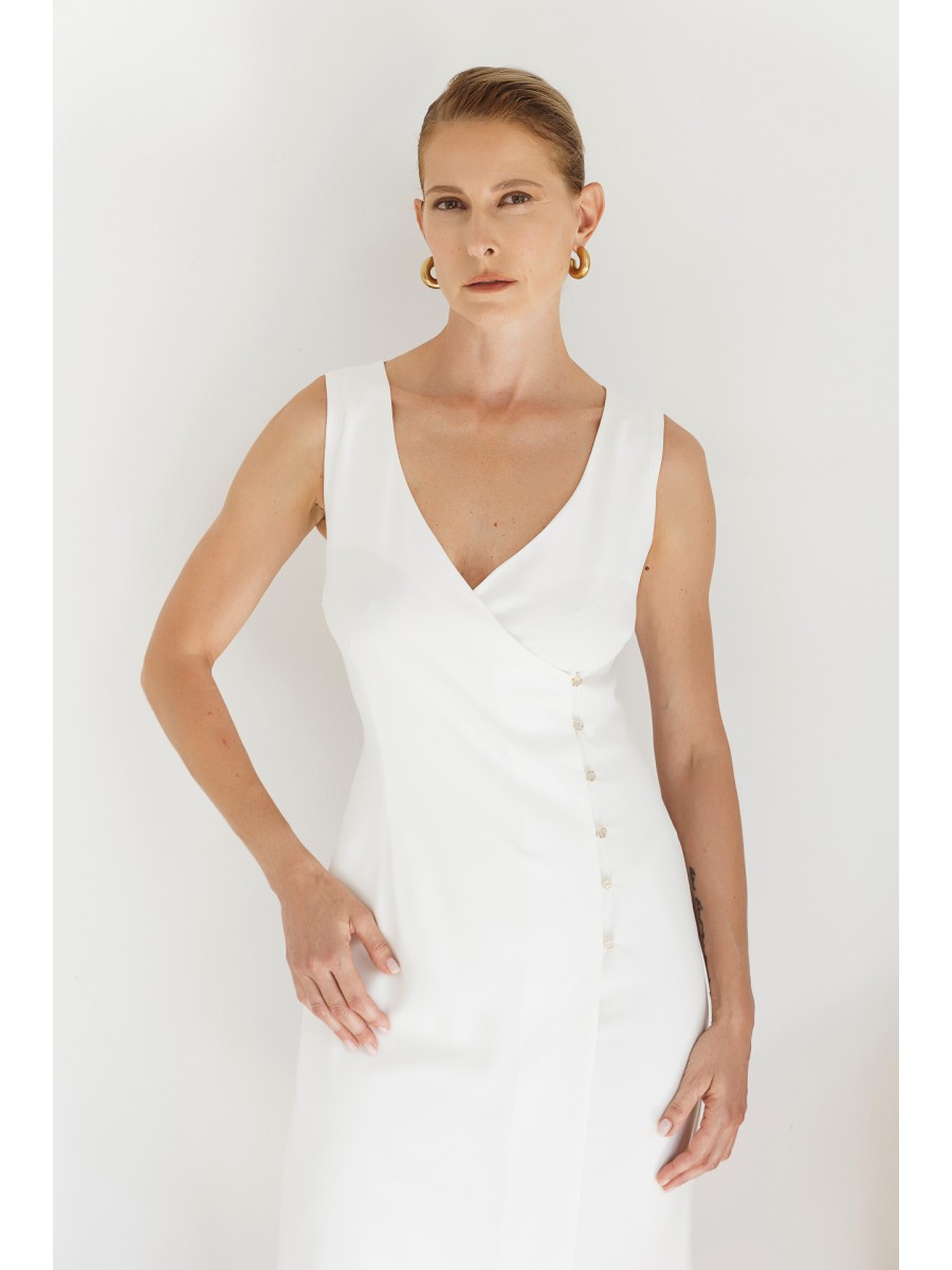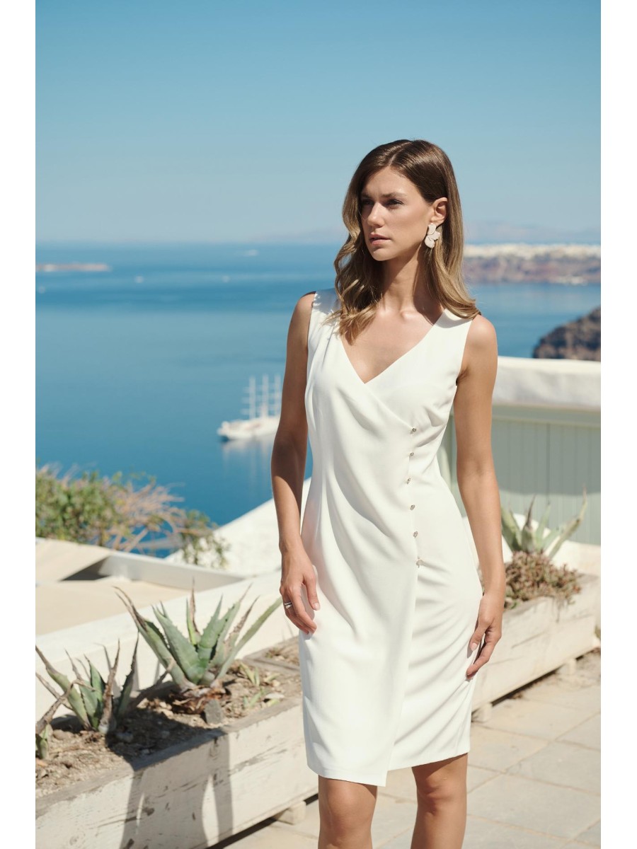 Φόρεμα αμάνικο κρεπ κουμπιά