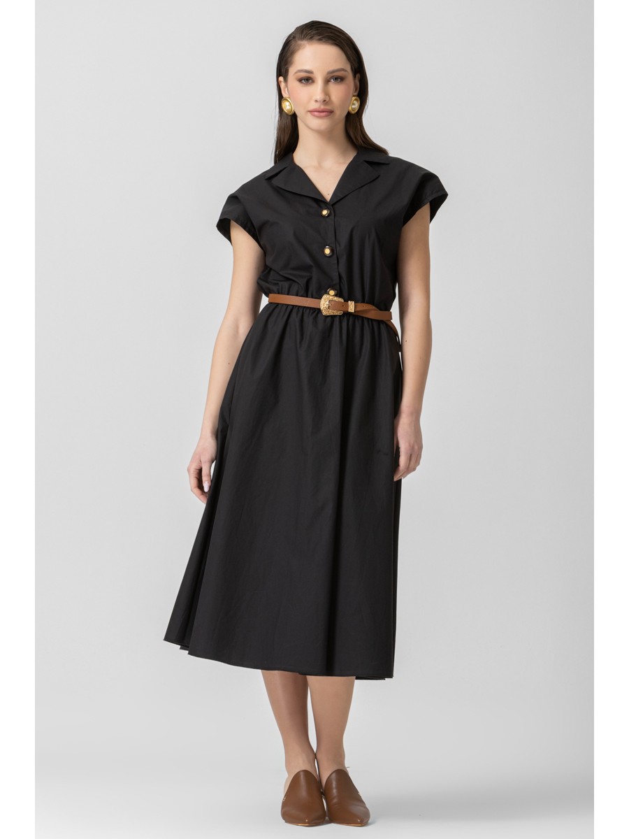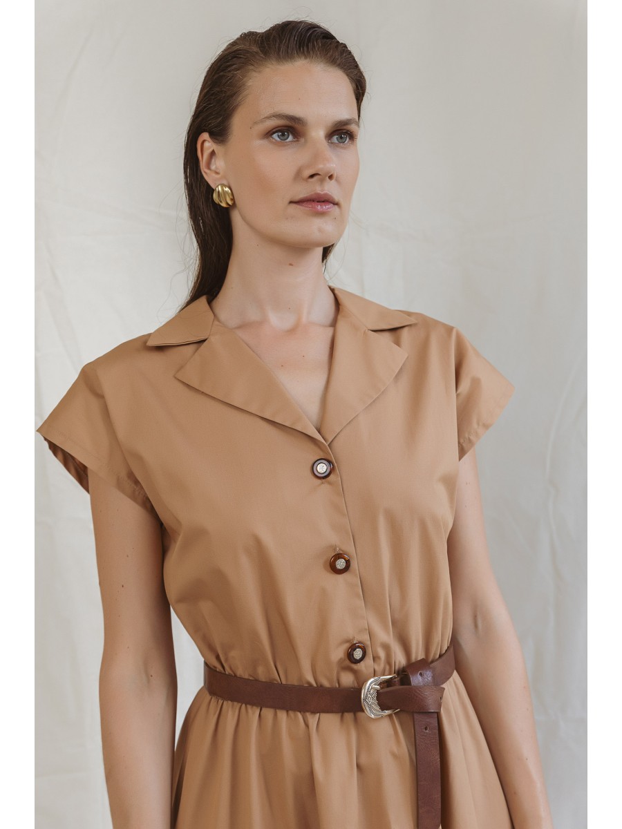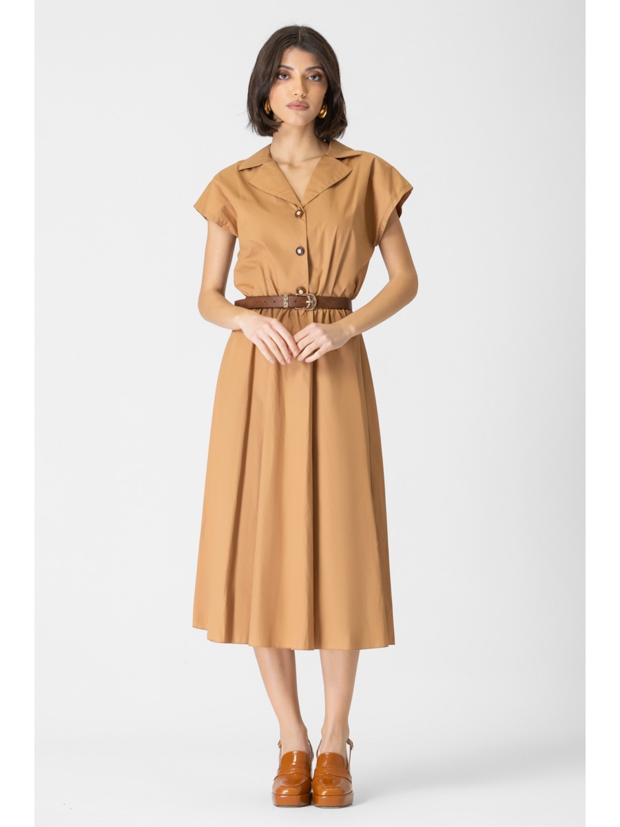 Φόρεμα ποπλίνα λάστιχο με ζώνη