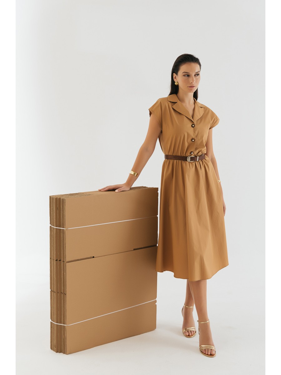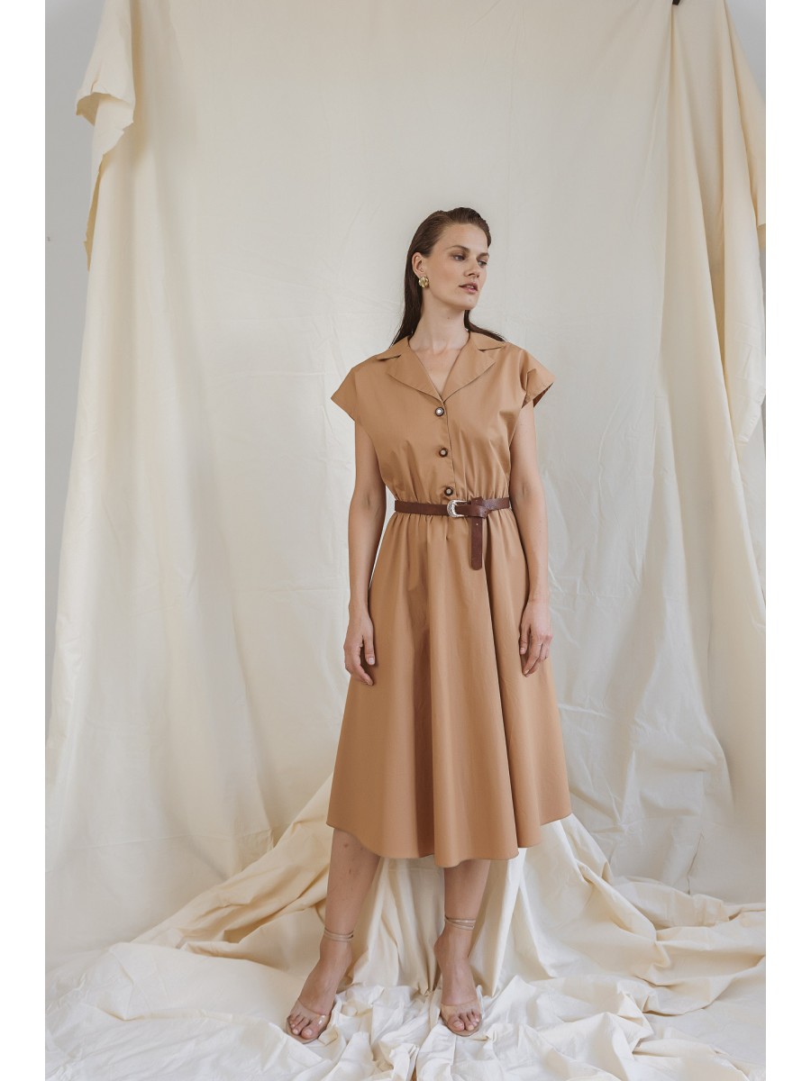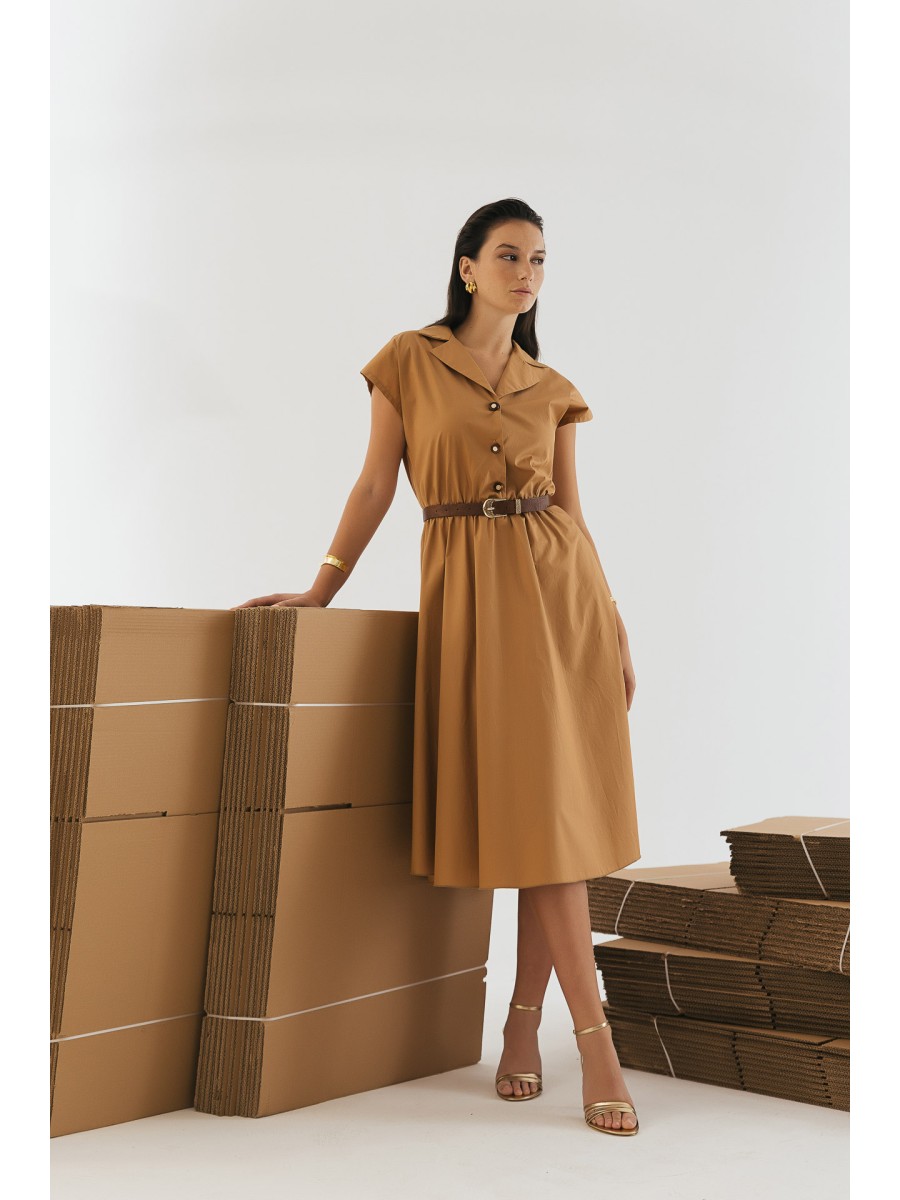 Φόρεμα ποπλίνα λάστιχο με ζώνη