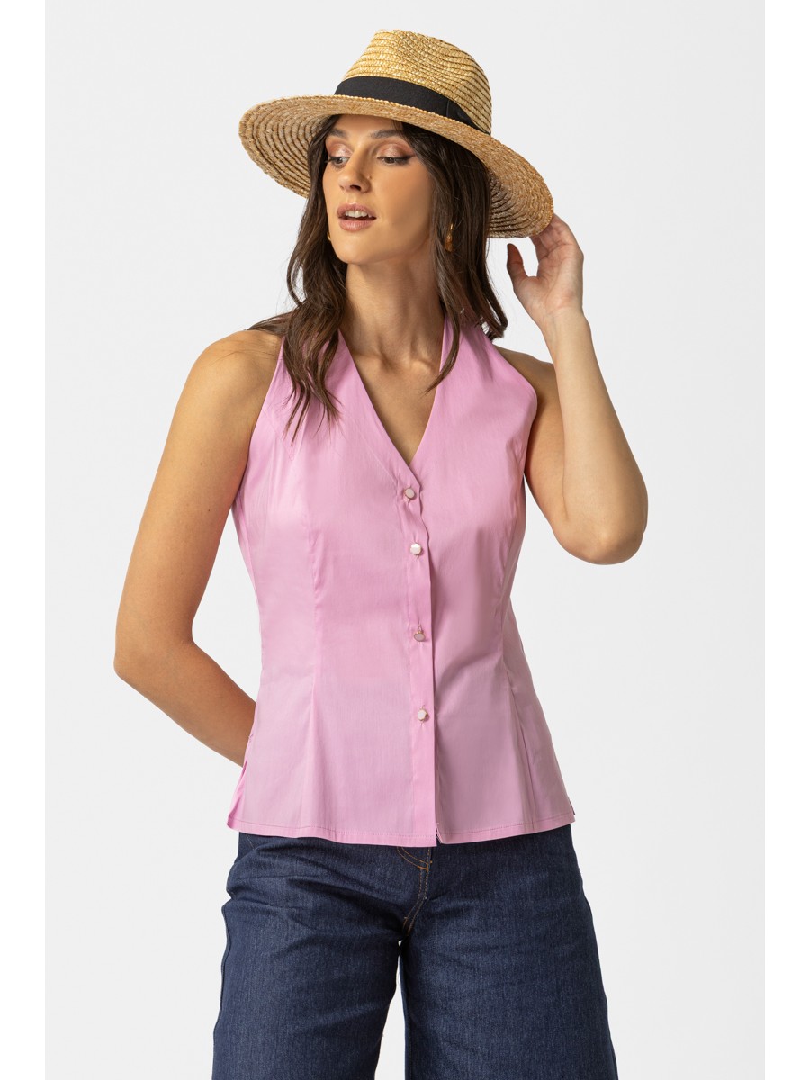 Πουκάμισο αμάνικο ποπλίνα Carolina