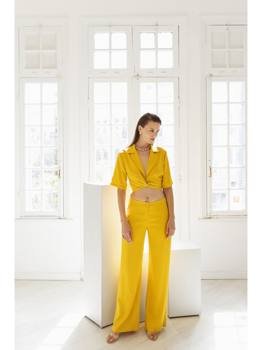 Linen look trousers Frida Ochre