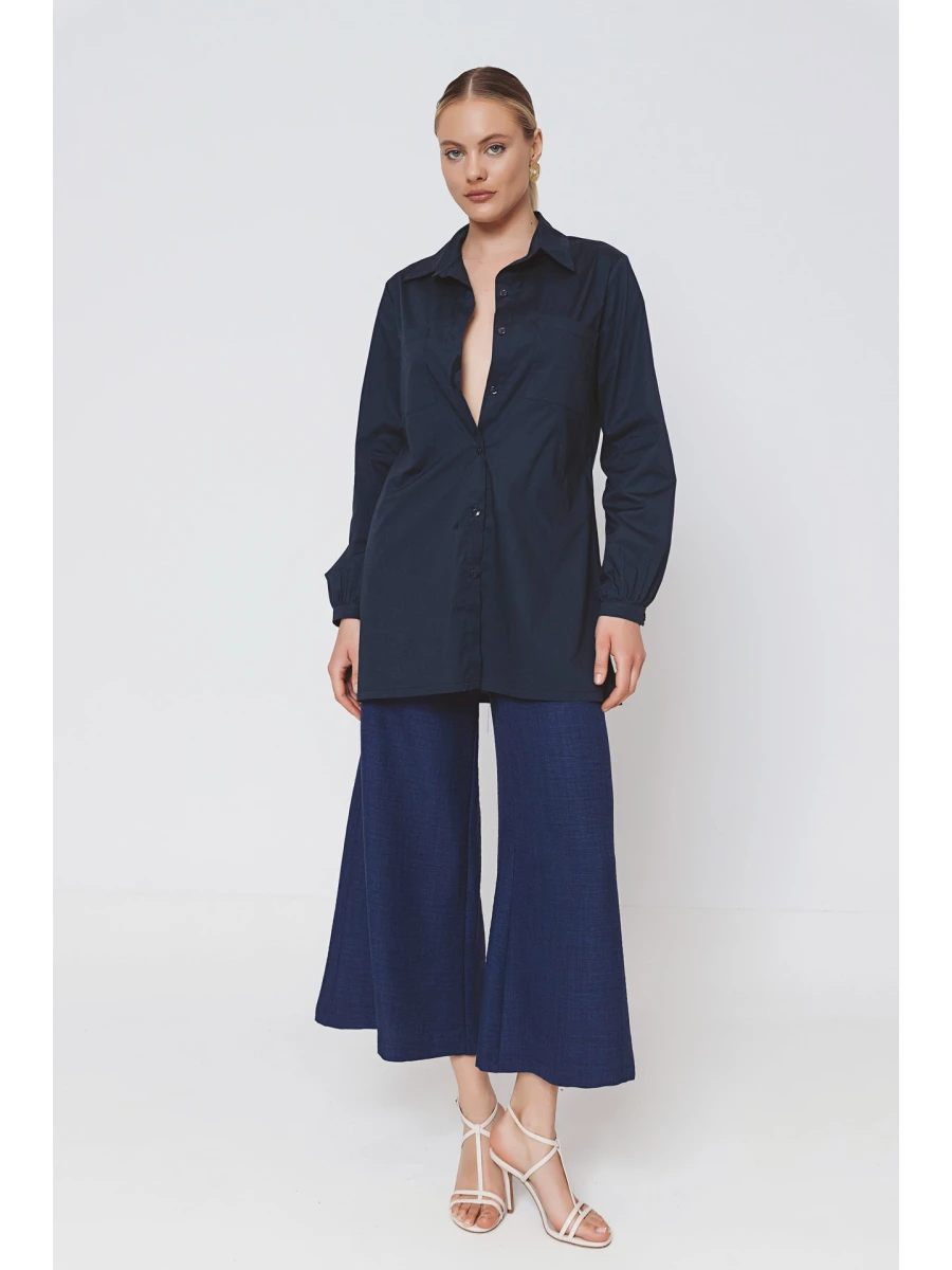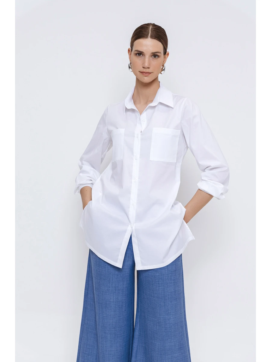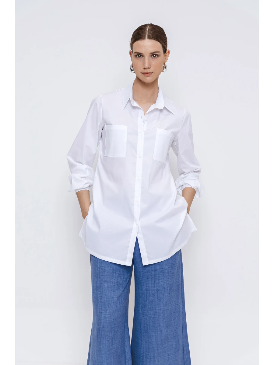 Πουκαμίσα ποπλίνα με σχισίματα και τσέπες